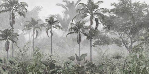 A vibrant tapestry of the jungle, detailed with various shades of green that display the rich variety of tropical flora. The diversity in leaf shapes and the layering of the planting bring the design to life.