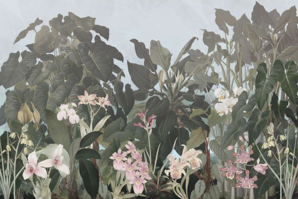 A luxurious design with lush tropical leaves and delicate flowers. These patterns bring an exotic atmosphere and a refined experience of nature to any room.
