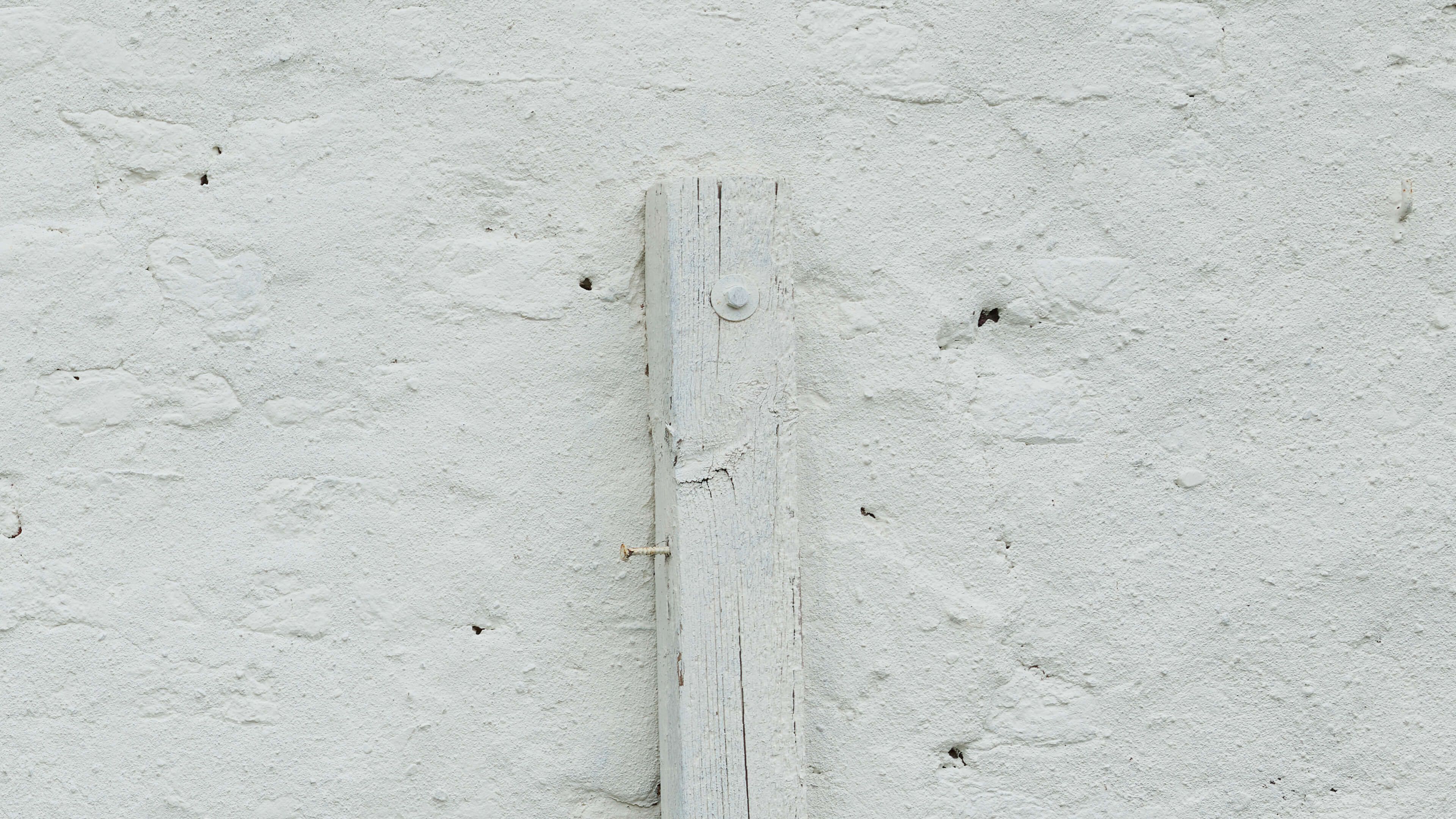 Wall with white plaster and a wooden beam. The details on this wall are easy to see.