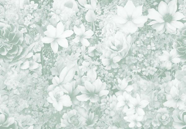 This design brings a dreamy composition of light blue tones and delicate white flowers, subtly complemented by soft green leaves. The pastel-like background evokes a clear spring sky, creating a sense of calm and freshness. In a romantic interior, this pattern adds a light, playful note, especially in combination with cream-colored furniture, soft textiles, and glossy accessories. For a more streamlined interior, a combination with sleek shapes and glass or metal details can provide a contemporary touch. This design is particularly suitable for bedrooms, bathrooms, and other spaces where a calming, almost spa-like atmosphere is desired. The light color shades and graceful flowers create a breezy, harmonious whole.