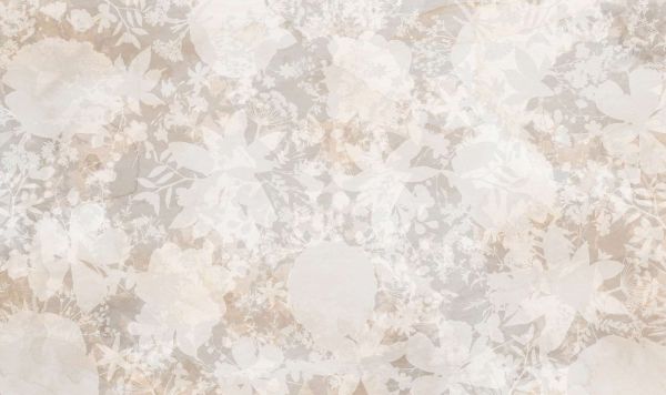 This sophisticated design exudes a calming elegance with its soft floral silhouettes floating in an ethereal mist of pastel and neutral tones. Subtle details of flowers and leaves come to life in a harmonious play of shadow and light, adding depth and a touch of mystery to the design.