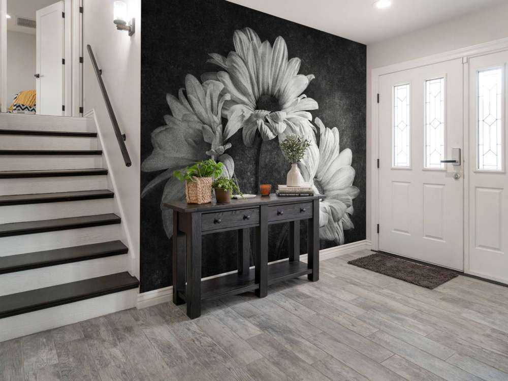 Three flowers in black and white. Combine this photo wallpaper in the bedroom or living room.