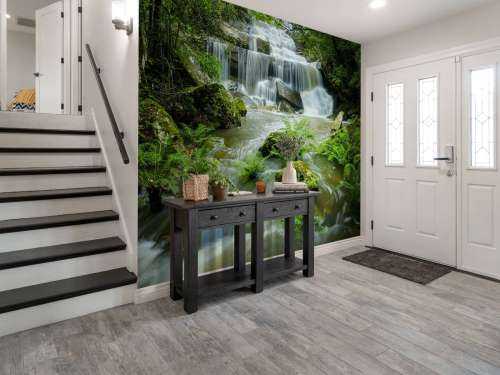 A flowing waterfall in the middle of the jungle. The perfect photo wallpaper for jungle lovers.