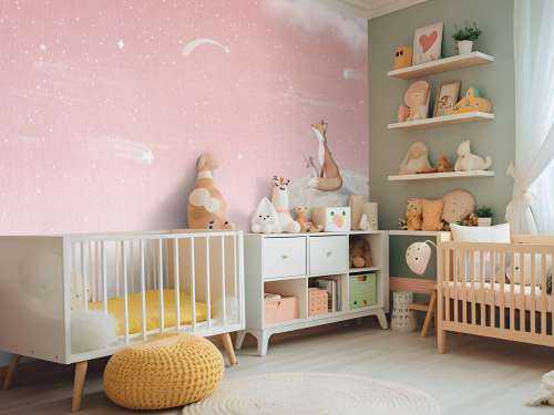 Fox on the Moon - Pink Peel and Stick Wallpaper