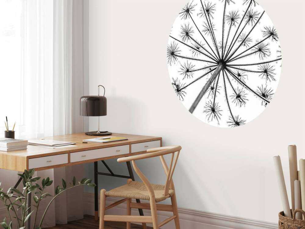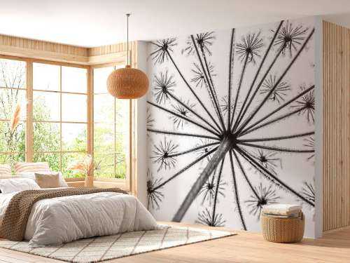 This design shows the sophisticated architecture of nature, with the visible lines of the plant stems converging to a single point, similar to stars revolving around a celestial pole. The contrast between the dark stems and the bright background enhances the dramatic effect.
