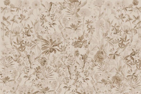 This refined design features a collection of botanical illustrations in light sepia tones, creating a calm and warm appearance. The delicate details of flowers and leaves give the design a vintage character, while the light sepia colors provide a soft and inviting atmosphere. The harmony between the detailed botanical forms and the warm background makes this design timeless and versatile.