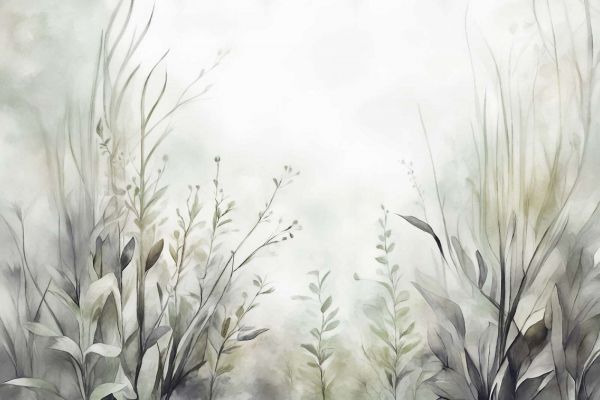 A refreshing watercolor design with soft green tones, combined with light sand and cream colors. The graceful blades of grass and fine leaves create a natural, fresh appearance, ideal for a tidy and cozy interior.
