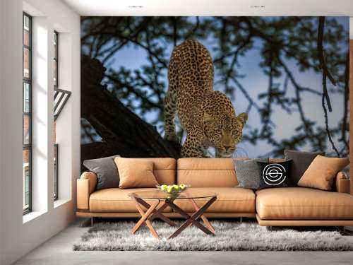 Going Down With Caution on photo wallpaper. A leopard cautiously sneaks down a tree.