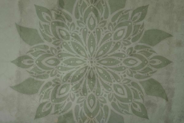 This detailed green mandala against a weathered background brings a vintage and soothing atmosphere to any space. The green tones of the mandala and the subtle textures of the weathered background create a natural and soothing ambiance, perfect for bohemian and rural interior styles. The detailed mandala pattern exudes a sense of peace and harmony, while the weathered background adds a vintage and rustic character to the design.