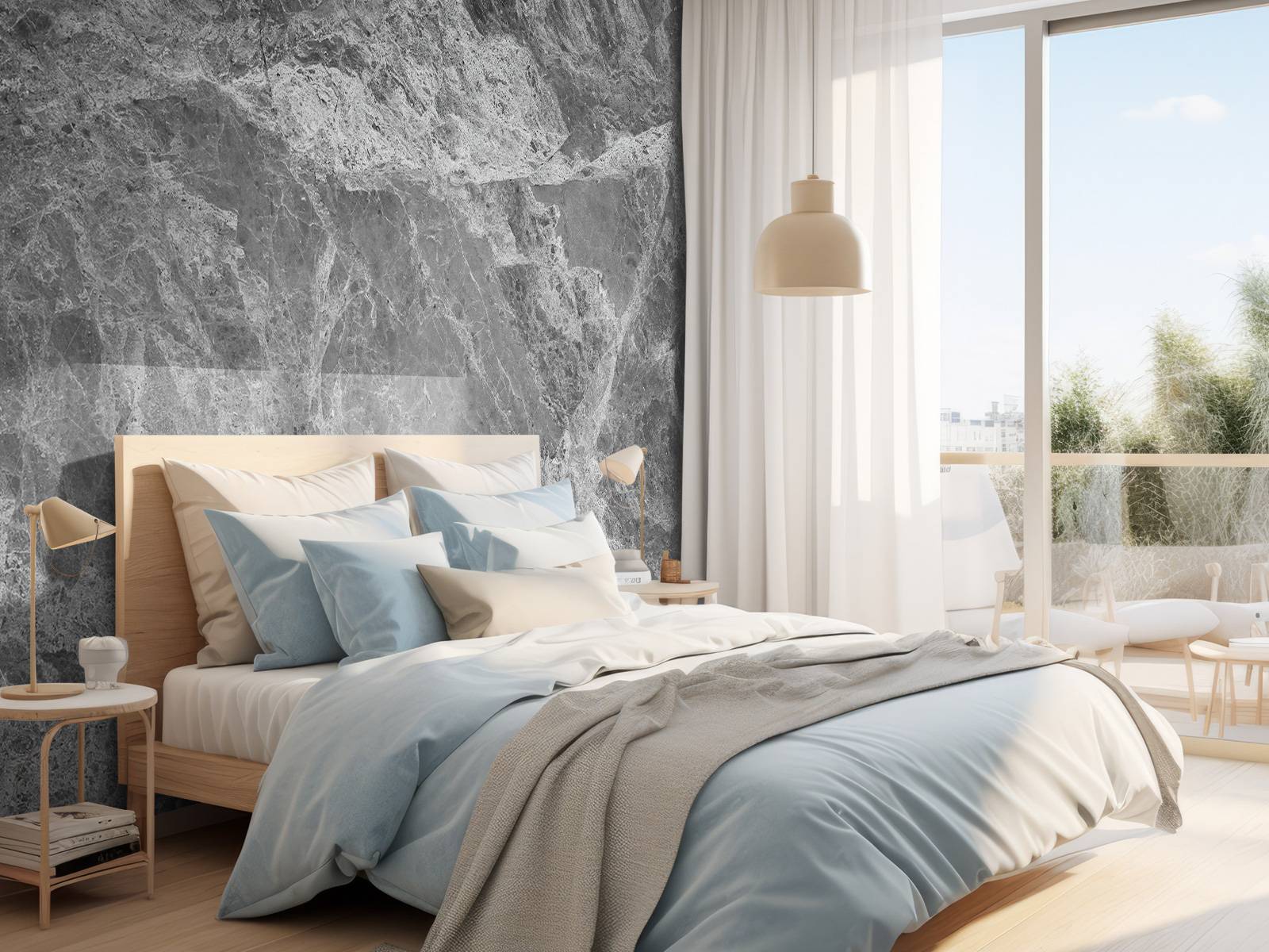 Grey marble on photo wallpaper. The details of the marble are easy to see, which makes this photo wallpaper look even more realistic.