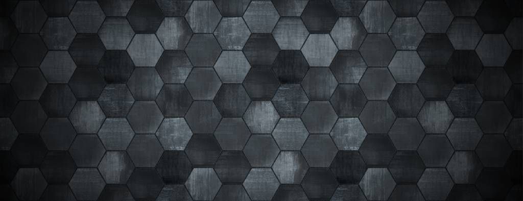 Wallpaper with a geometric pattern of stone hexagons in various shades of grey