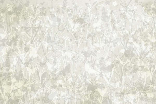 A delicate design in which butterflies and herbaceous flowers come together in a layered play of soft pastel shades. The subtle silhouette of flora and fauna creates a serene and timeless atmosphere.