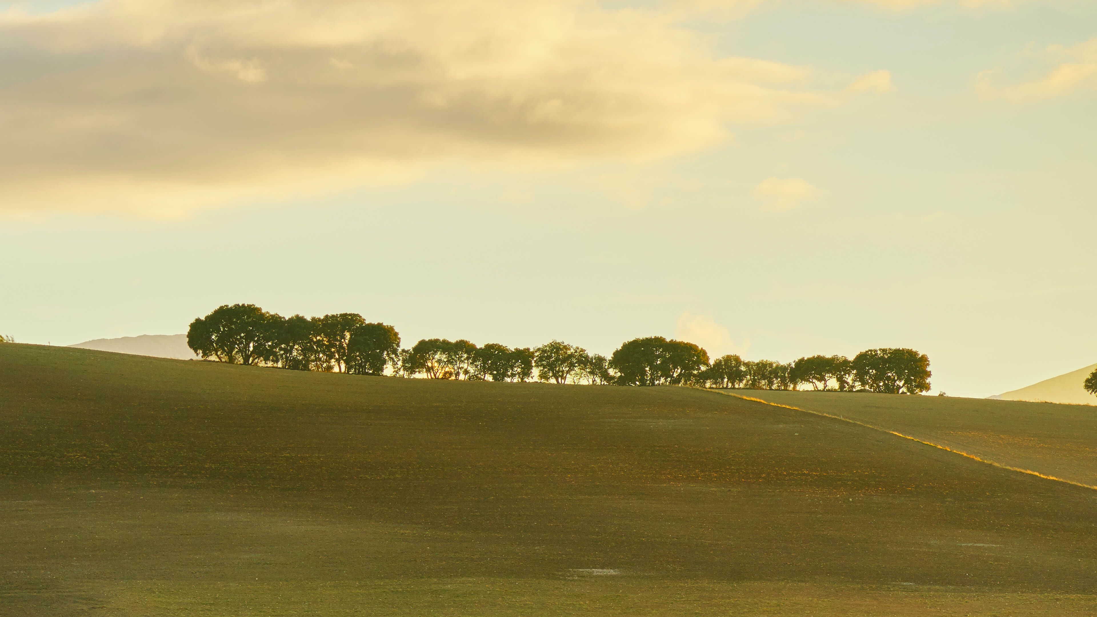 Hilled landscape during a sunset