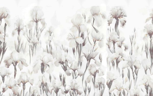 Refined irises in soft, muted beige tones create a subtle and elegant appearance. The watercolor technique gives the design a light and serene atmosphere.