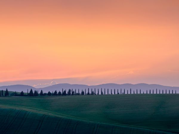 Italian landscape with orange sky Peel and Stick Wallpaper