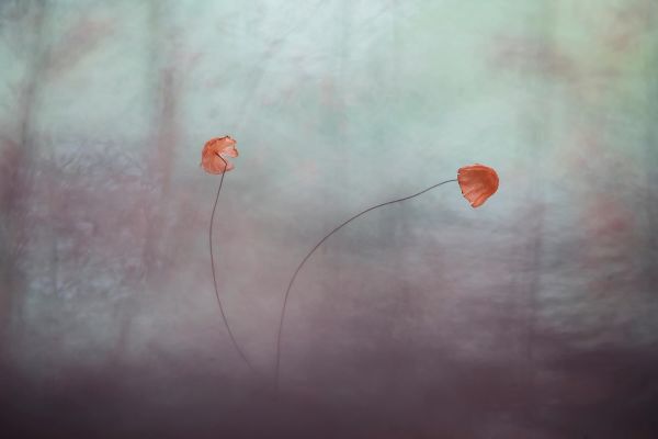 Little mushrooms in a misty forest. Combine this photo wallpaper in your room for even more atmosphere.