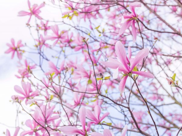 Magnolias photographed from below during a sunny day. Combine this photo wallpaper in the room for even more atmosphere.