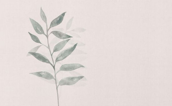 This serene design focuses on simplicity and natural elegance. A slender, branching stem with elongated leaves is painted in soft gray-green watercolor tones, with a playful transparency that suggests the effect of multiple layers. The delicate brushstrokes and light transitions give the whole a dreamy depth without making the design look heavy. The background resembles finely woven linen and adds a subtle texture that enhances the hand-painted character. Ideal for a minimalist or Japandi interior where peace, balance, and natural elements are central. In a space with light wooden furniture, clean lines, and neutral colors, this design shines beautifully. Also within a Scandinavian living style, combined with soft gray tones, white, and plants, it forms a natural complement that does not dominate but instead works in harmony with the surroundings. Due to its understated character, this design is particularly suitable for spaces where tranquility is desired, such as bedrooms, meditation rooms, or quiet workspaces. The soft watercolor technique and the subdued color palette make it perfect for creating a calm, reflective atmosphere. Combine this design with natural materials such as linen, unbleached cotton, or light ceramics. Accessories in matte finishes, such as white vases, wooden trays, or fabric wall hangings, enhance the understated look. The design can also offer an elegant contrast in more modern interiors with hard materials such as concrete or steel, where it provides a softer balance.