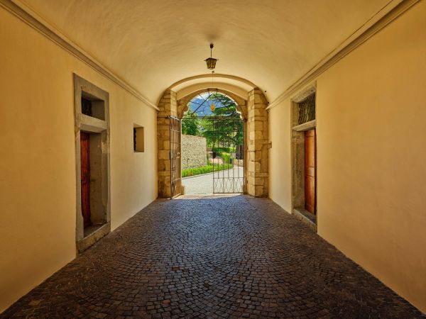 Passage in a monastery on a sunny day. With this photo wallpaper in your home, it is as if you can walk into the corridor.