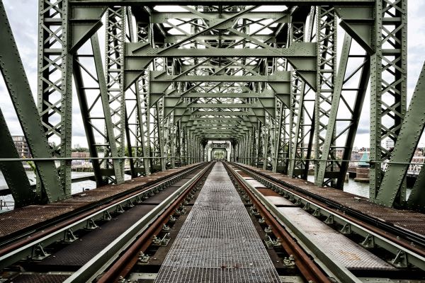 Monumental railroad bridge De Hef in Rotterdam in different materials