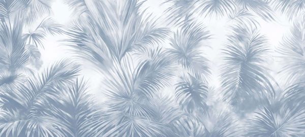 Elegant palm leaves in various shades of blue, ranging from soft pastel blue to deep navy blue. This creates a calm, almost coastal atmosphere with a tropical touch.