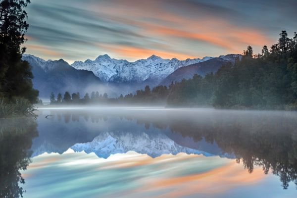 Pastel Hues photo wallpaper from our 1x collection. The reflection of the landscape can be seen in the water.