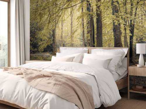 Path through the forest during a rainy day. With this photo wallpaper in your home, it's as if you could walk into the forest.