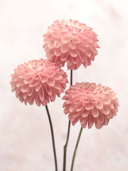 A portrait of three pink dahlias. Combine this photo wallpaper in the bedroom or living room for even more atmosphere.