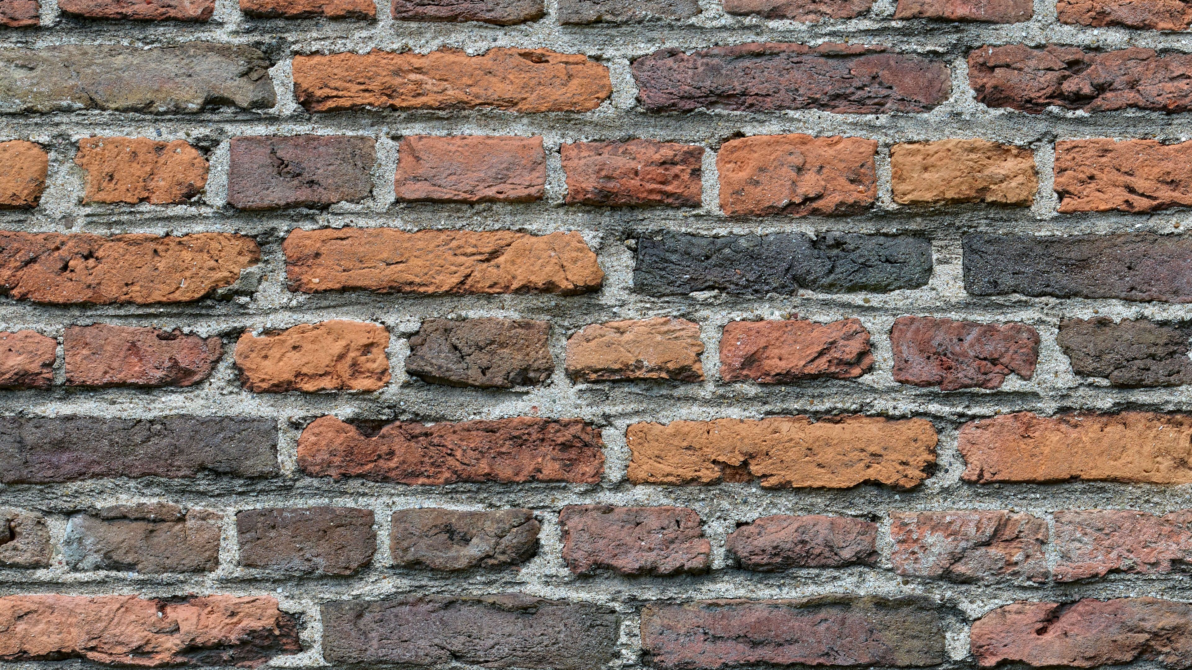 Restored wall made of old coloured bricks. With this photo wallpaper in the room, it is as if the wall is made of stone.