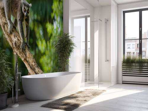 Ring-tailed monkey in a tree Peel and Stick Wallpaper