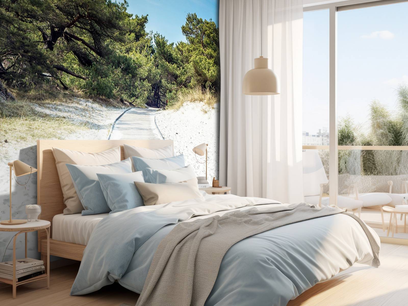 Photo wallpaper with a panorama photo of a path that runs through the white sand