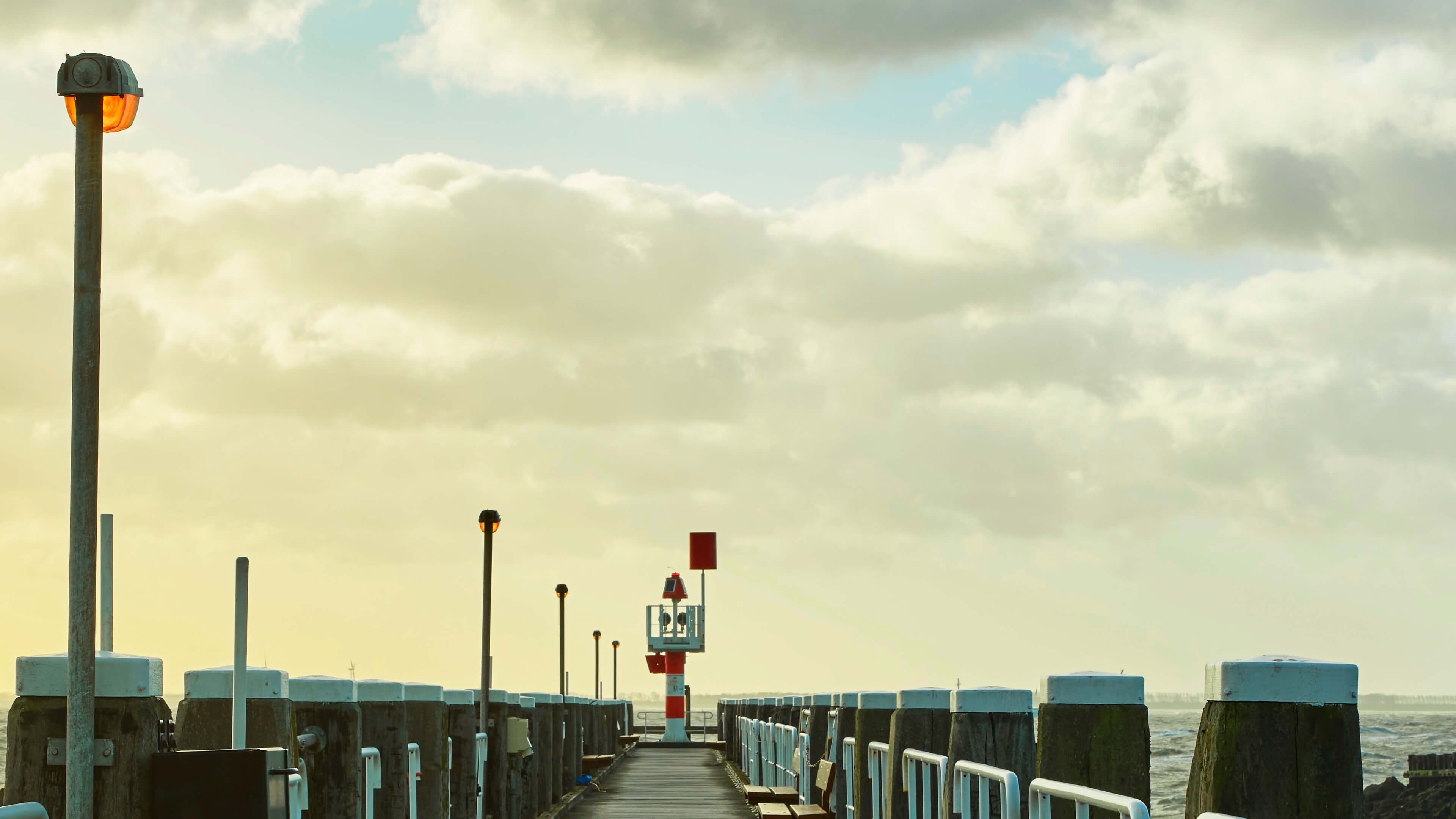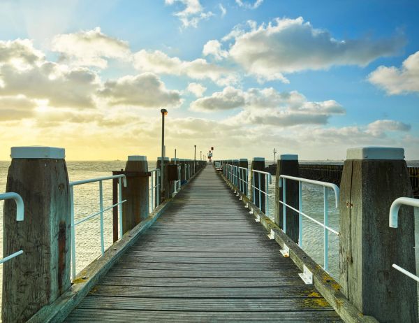Photo wallpaper of a coastal jetty at sunrise is a beautiful decoration that will take you to a peaceful and serene place. The photo wallpaper shows a jetty rising above the sea, with the warm light of the sunrise in the background. The colors of the water range from light blue to deep blue, depending on the depth of the sea, and the natural colors are breathtaking. The photo wallpaper is of high quality and will beautifully display every detail of the shore and jetty. It will give the room a calm and serene atmosphere and will surely impress anyone who enters the room.