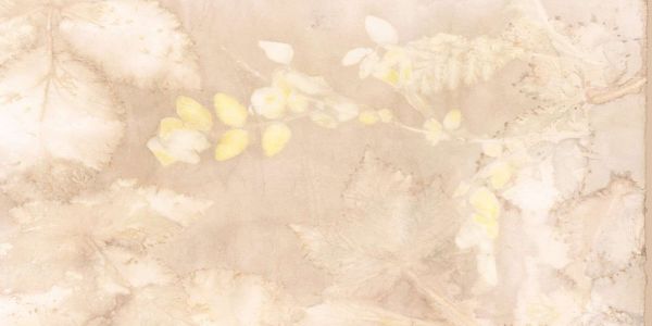 Wallpaper in warm shades with fresh yellow and white details in the leaves.