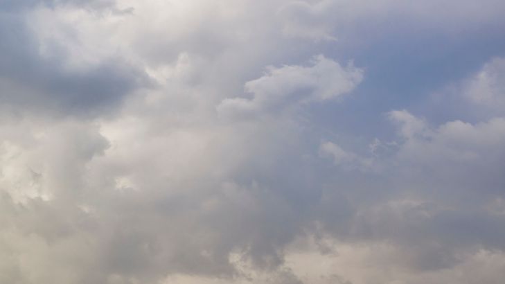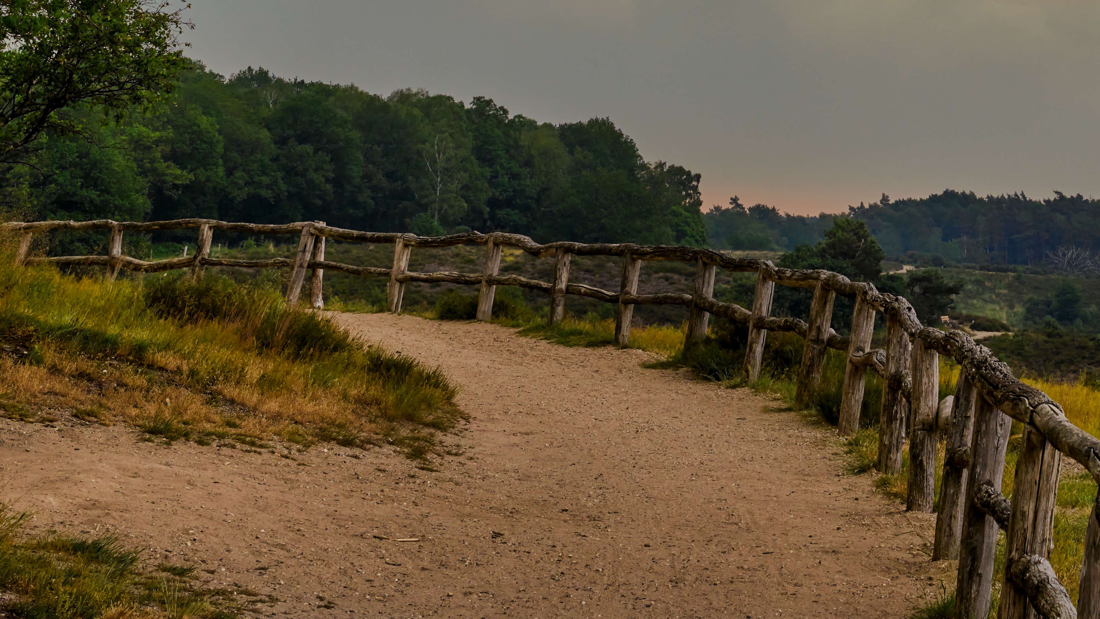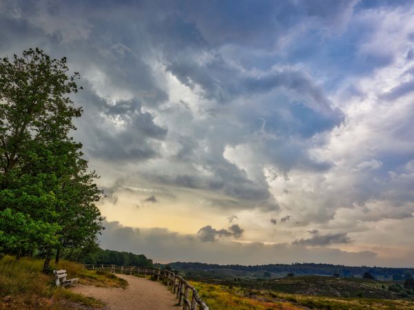 Storm-like clouds with a bench in the landscape. Combine this photo wallpaper in your home for even more atmosphere.