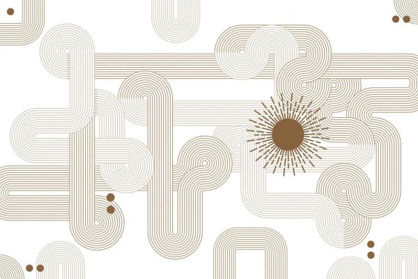 This design captures a complex tangle of lines in warm earth tones, interspersed with delicate shadow effects. It is a hypnotic pattern that evokes both a sense of movement and security.