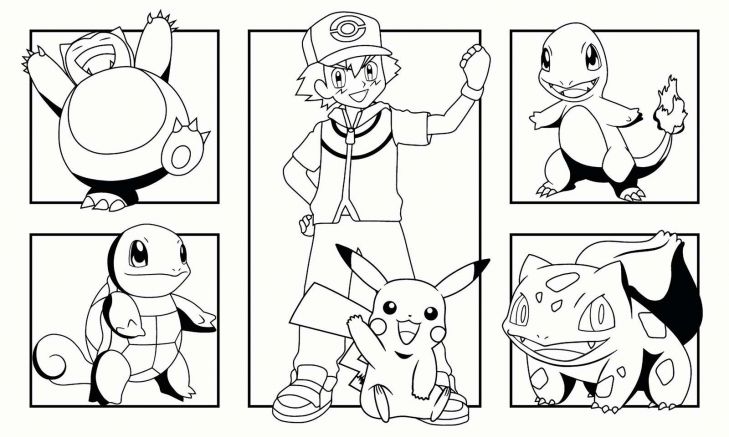An enthusiastic team of cute creatures gathered around their trainer. With lightning, fire, plants, and water, this design represents friendship, diversity, and adventure in a cheerful comic style.