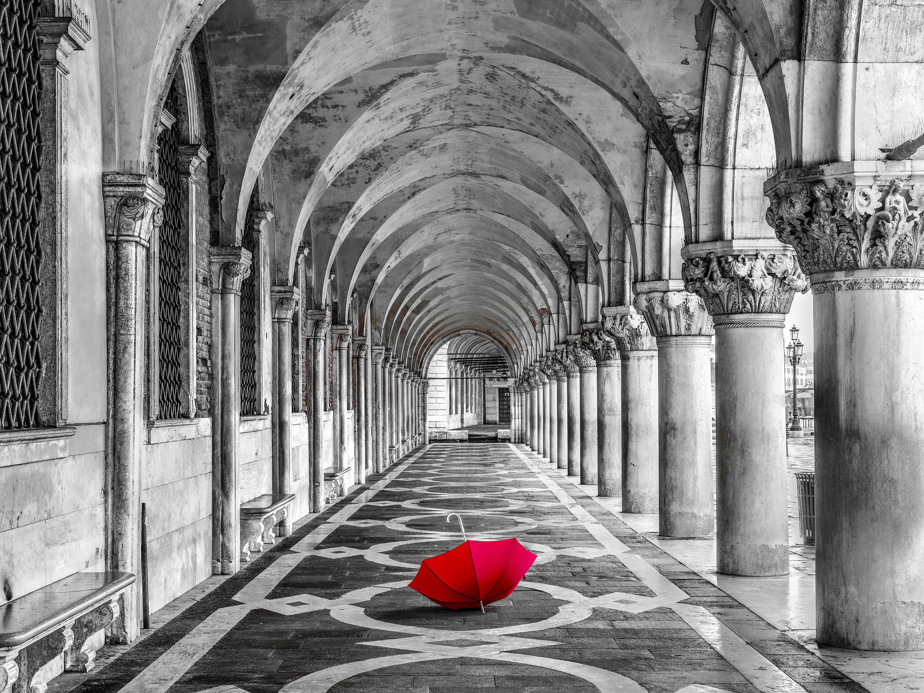 Umbrella in the gate of the Doge's Palace in Venice, Italy. With this photo wallpaper in your room, it is as if you can walk through this palace yourself.