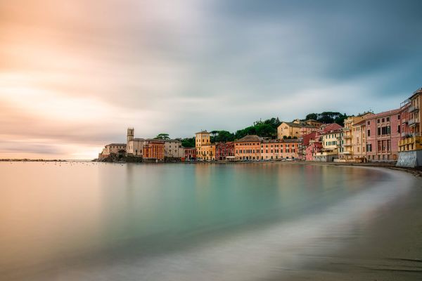 The ''Silence bay'', shows a deserted beach during a cloudy day. The coloured houses make this photo wallpaper atmospheric.