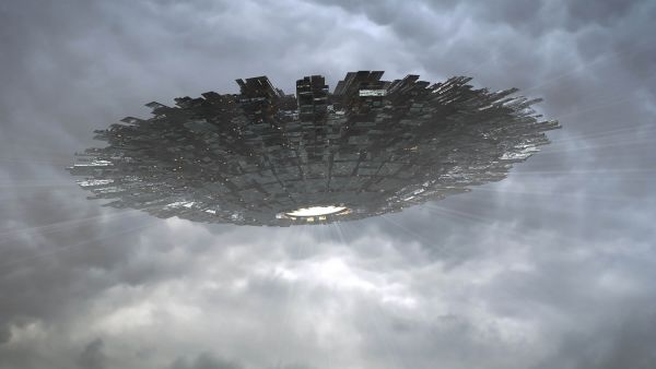 A UFO landing. Complete your game room with this photo wallpaper of a UFO.