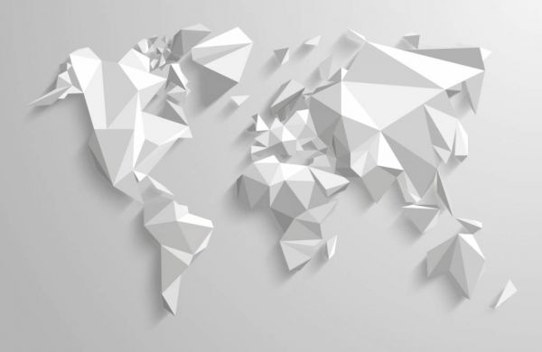 Modern photo wallpaper with a 3D world map with folded shapes. This tough wallpaper gives an extra dimension to your interior.