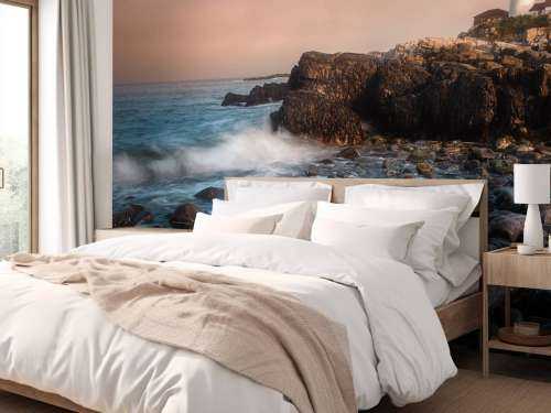 Photo wallpaper from A Moody Day. A cliff with a lighthouse and a wavy sea in front.