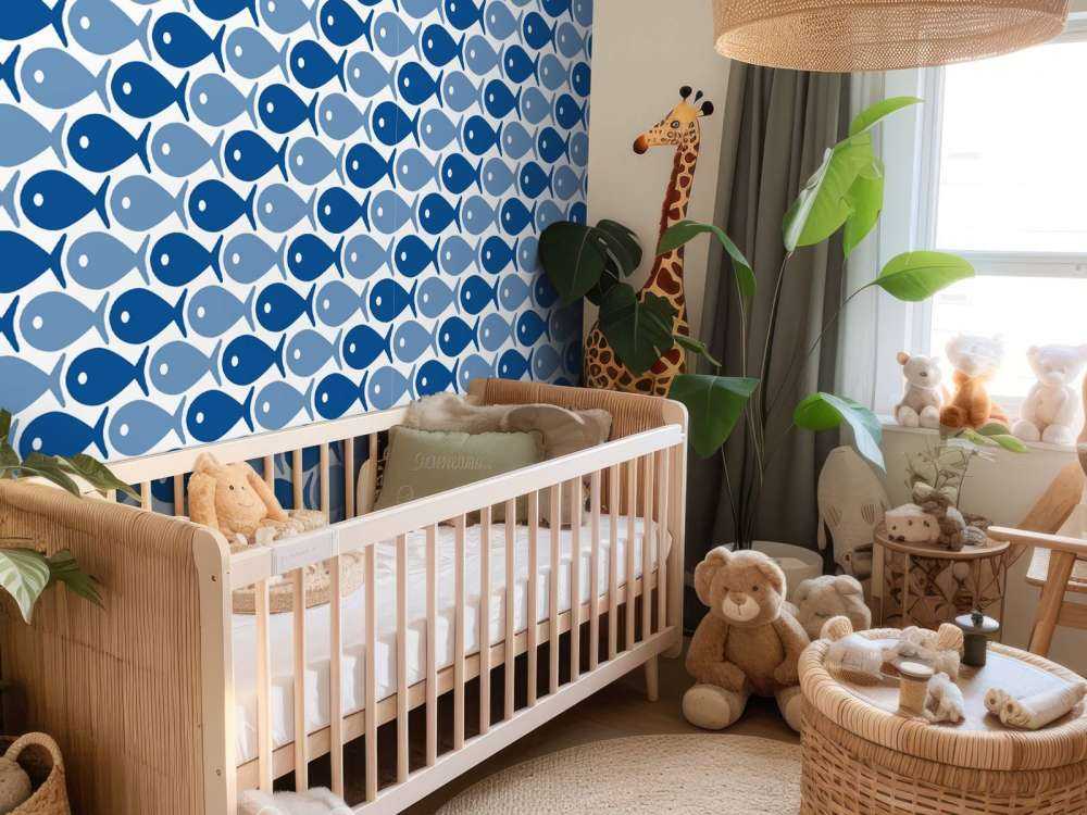 Photo wallpaper with a pattern of light blue and dark blue fish