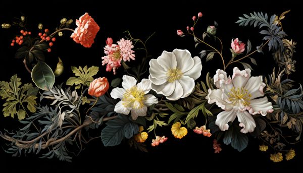 A modern twist on the botanic illustration style. A swirl of flowers to bring magic in your room…