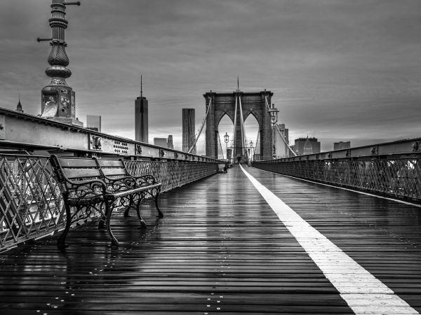 A bridge in New York in black and white. Combine this photo wallpaper in your home for even more atmosphere.