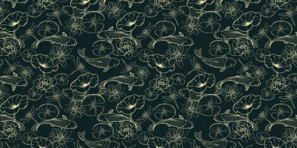 A pattern of carp, lotuses and dragonflies. Combine this photo wallpaper in your living room or bedroom for even more atmosphere.