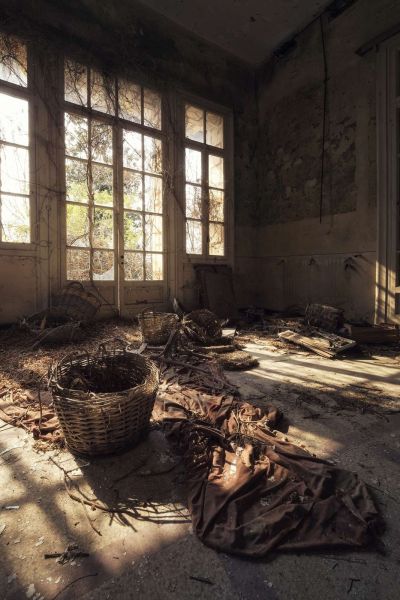 This ancient vacation camp is located in the Italian mountains. Beautifully situated on the flank of a mountain with stunning views of the lake below, this must have once been a wonderful, vibrant place. Today you can only hear the cawing of the birds that populate the place.