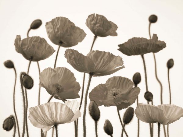 Dark poppies on a white background. Combine this photo wallpaper in your home for even more atmosphere.