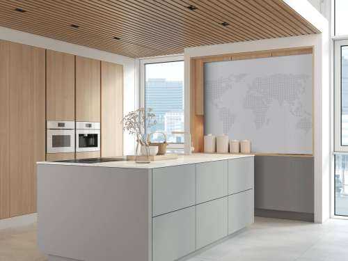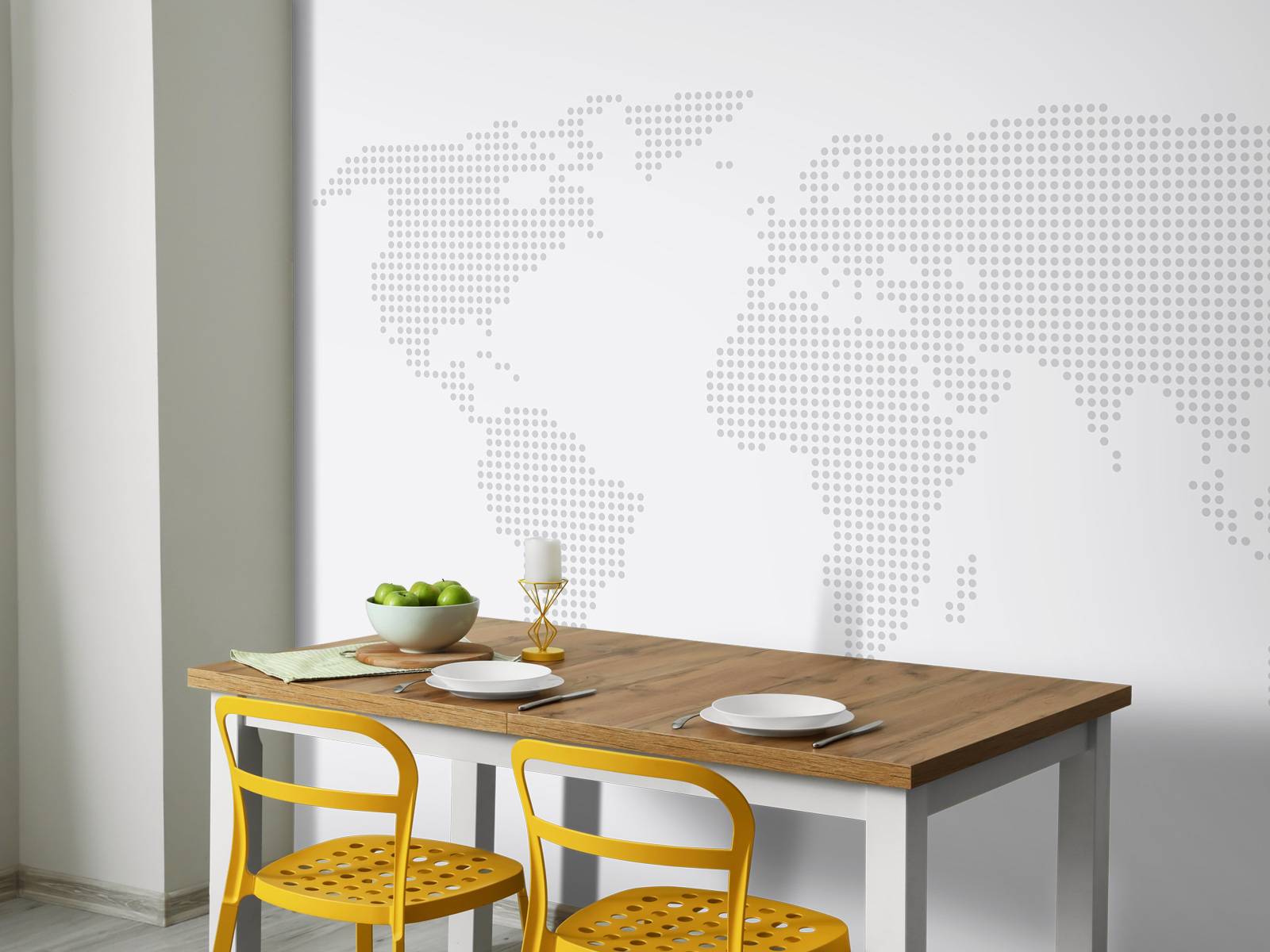 Modern photo wallpaper with the world map made up of dots. Give your interior an extra modern touch with this photo wallpaper.