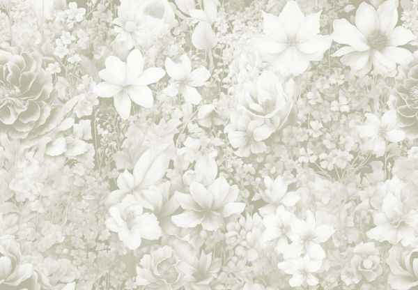 This cheerful pattern features a light, almost pastel green tone at its center, where the flowers and leaves seem to naturally blend. The bright accents in cream tones enhance the freshness and create a balance between soft and vibrant. This design fits seamlessly into interiors that need a fresh, uplifting atmosphere. Combine it with white furniture and transparent fabrics for an airy look, or add dark accessories for a strong contrast. Extremely suitable for spaces where a light and positive atmosphere is desired, such as a living room, kitchen, or children's room. The dynamics of the light green and the graceful flowers give an energetic touch to your interior.