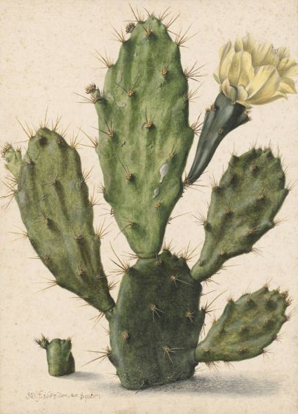 Flowering fig cactus, Herman Saftleven, 1683. Made with a brush and watercolour. A beautiful watercolour